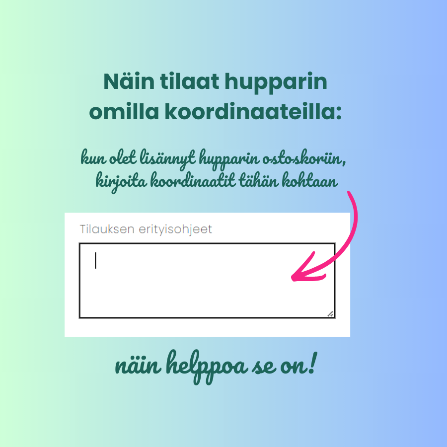 - Kirjoita koordinaatit kohtaan "Tilauksen erityisohjeet".